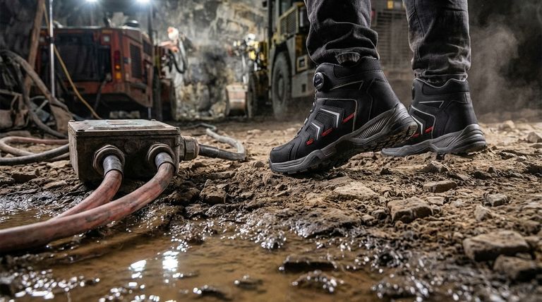 其核心原理是,额定电击危害(EH)的采矿靴通过将您与地面隔离来工作。其鞋底和鞋跟由非导电、电绝缘材料(如橡胶)制成,这些材料充当屏障,在意外接触带电电路时阻止电流流过您的身体。