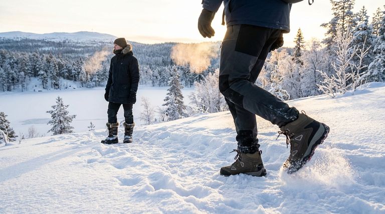 - 如果您的主要重点是在严寒中进行静止活动(冰钓、狩猎):优先考虑最大保暖性,选择800克、1000克甚至更高额定值的靴子,通常带有可拆卸内衬。