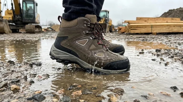 要真正防水,最好的工作靴依赖于材料系统的协同工作。最有效的设计是将耐用的外层材料,如处理过的皮革或合成尼龙,与内部的透气防水膜(如Gore-Tex)相结合。在恶劣条件下实现完全的防水性,实心橡胶或PVC仍然是黄金标准。
