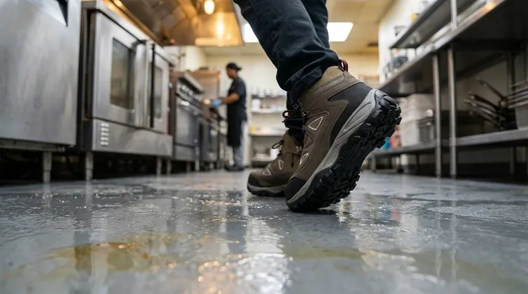 穿防滑鞋的主要原因是显著降低您在工作场所受伤的风险。对于在潮湿、油腻或打滑的地板环境中工作的人来说——例如餐饮服务、医疗保健或工业场所——这些鞋子是至关重要的个人防护装备,旨在防止危险且代价高昂的滑倒、绊倒和跌倒。